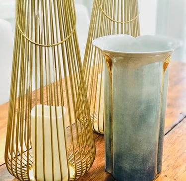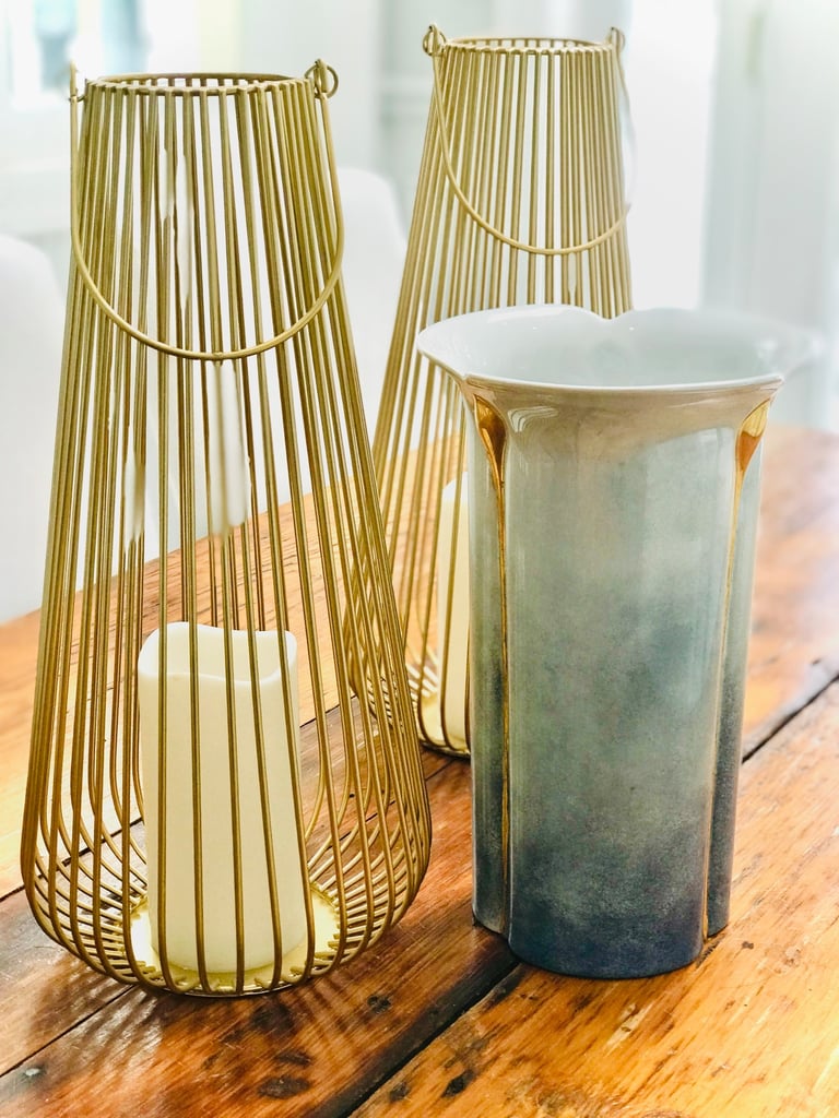 When you display items that have something in common, like the gold color in modern lanterns and in German Arzberg vintage vase in the picture, you are doing pretty good. That vase belonged to my parents and I'm so happy that I got it to Canada in one piece.